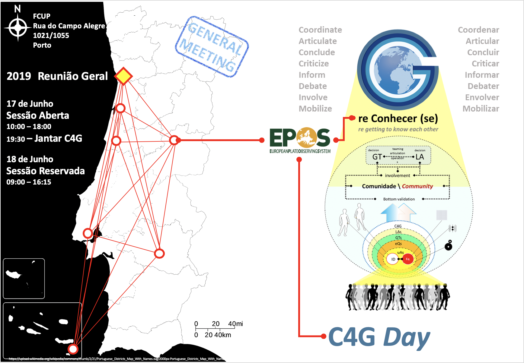 As atividades do C4G são viabilizadas pela colaboração de todos na comunidade das ciências da terra sólida, que tem de ser mobilizada de forma a reconhecer-se no C4G. Esse envolvimento é promovido pelo debate de ideias, pela partilha de informação, pela crítica e aperfeiçoamento coletivo, permitindo atingir conclusões agregadoras e articulando e coordenando propósitos de ação em reflexo da comunidade.